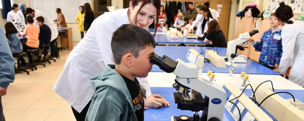 Çocuklar mikroskop istasyonlarında; histoloji alanında algler, su kuleleri, planarya, solucanlar ve köpek balıkları bölümleri ile kan, mide, beyin zarı, bağırsak gibi dokuların hücreleri; botanik alanında ise, soğan, ayçiçeği, fasulye kökü, eğrelti otu gibi bitkilerin bazı bölümlerini gözlemledi. STEM ve robotik istasyonunda eğlenceli deneyler gerçekleştirdi. Formaldehit (çürümeyi engelleyen sıvı) içerisindeki mürekkep balığı, zargana, kedi balığı, akrep gibi canlıları tanıyarak, dokunarak ve gözlemleyerek biyoçeşitliliğimizi zenginleştiren hayvanları öğrendi. Bilim Şenliği, Fildişi Macunu deneyi ile sona erdi.