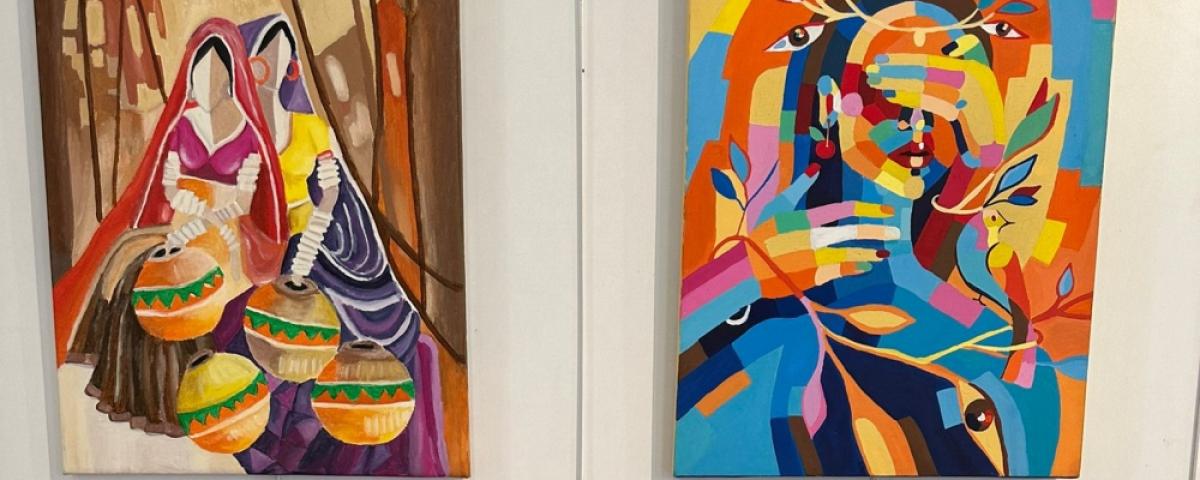Sergide karakalem portre, natürmort, desen ve imgesel çalışmalar, akrilik tuval çalışmaları, tuval üzerine atık malzemelerle yapılan kolaj çalışmaları, suluboya, büyük boy pastel boya çalışmaları yer aldı.