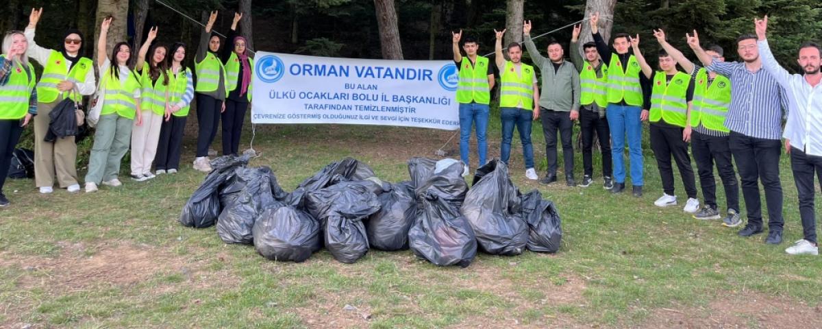 Bolu Ülkü Ocakları yine bir farkındalık çalışmasına imza attı. Özellikle yaz aylarında insanların yoğun şekilde piknik yaptığı at yaylası bölgesinde, doğaya bırakılan atıklar ciddi bir çevre ve görüntü kirliliğine neden oluyor. Bu kirliliğe dikkat çekmek isteyen Bolu Ülkü Ocakları Başkanı Sedat Tok ve yönetimi, üniversite ve Asena teşkilatını bölgeye göndererek, çevre duyarlılığa imza attı. Teşkilatlar gittikleri bölgede piknikçilere tarafından gelişi güzel bırakılan çöpleri toplayarak, piknikçilere duyarlı olmaları mesajını verdi.
