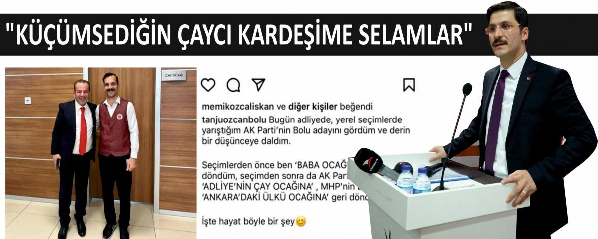 Bolu Belediye Başkanı Tanju Özcan, Bolu Adliyesi'nde fotoğraf çektirdiği çaycı üzerinden Muhammed Emin Demirkol'a göndermede bulundu.