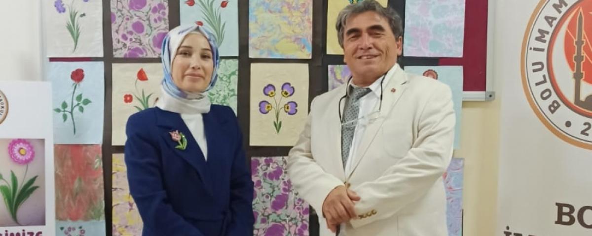 Bolu İmam Hatip Orta Okulu öğrencilerin bir yıl boyunca, Okulun Fen Bilgisi öğretmeni Aynur Akman nezaretinde, emek vererek hazırladıkları 65 parça ebru eserlerinin yer aldığı, Ebru sergisi ziyaretçiler tarafından büyük ilgi ve beğeni topladı.
