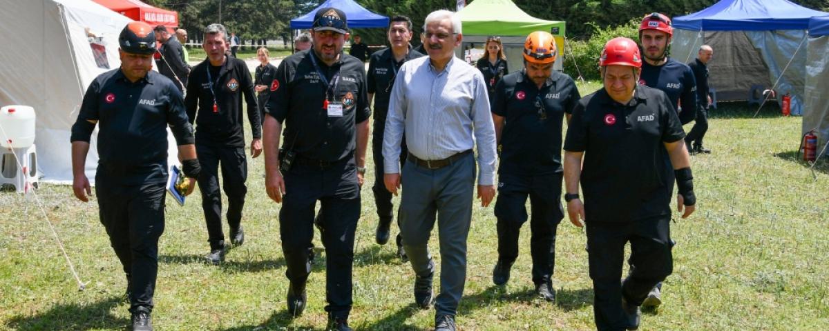 Deprem, sel, yangın gibi felaketlerin hayatın gerçeği olduğunu belirten Valimiz Sayın Erkan Kılıç, “Tüm doğal afetlere karşı her zaman hazırlıklı olmalıyız. Doğal felaketlere uğrayan vatandaşlarımıza yardım eli uzatmak ve vatandaşlarımızın hayatını kurtarmak çok önemli bir vazifedir. Valilik olarak hem Bakanlığımızla hem de kurumlarımızla bağlantılı olarak gerekli çalışmaları yaptık, yapmaya da devam edeceğiz. Bolu'nun coğrafi konumu itibarıyla ilimizde arama kurtarma ekiplerinin artırılması ve bu ekiplerin AFAD ile akredite edilmesi büyük önem arz ediyor. Arama kurtarma ekiplerimize özverili çalışmalarından dolayı teşekkür ediyor, deprem başta olmak üzere tüm doğal afetlerde hayatını kaybeden vatandaşlarımıza Allah'tan rahmet, yakınlarına sabırlar diliyorum. Allah vatandaşlarımızı tüm felaketlerden korusun.” dedi.