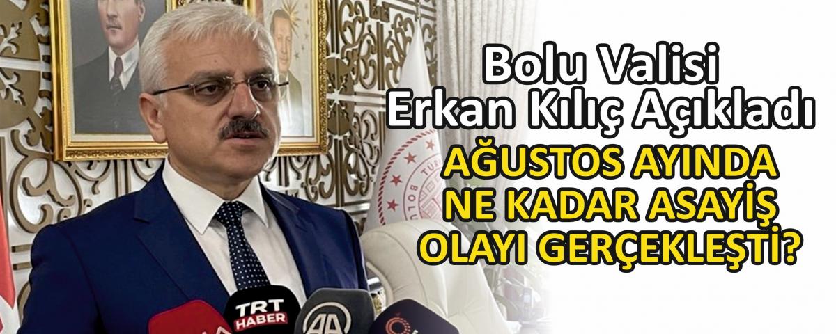 Asayiş olaylarının detaylarından bahseden Vali Erkan Kılıç, "Ağustos ayı içerisinde, bin 240 asayiş olayı meydana gelmiş, bu olayların yüzde 95'i aydınlatılmıştır. Bu olaylarda 922 şüpheli tespit edilmiş, bu şüphelilerden 769'u yakalanmış, 7'si tutuklanmıştır. Yaşanan asayiş olaylarını detaylandırdığımızda, kasten yaralama, kasten öldürme, tehdit, hakaret gibi kişilere karşı işlenen suçlar kapsamında 415 olay meydana gelmiş, bu olayların yüzde 99'u aydınlatılmıştır. Malvarlığına karşı işlenen suçlar kapsamında 140 olay meydana gelmiş, bu olayların yüzde 61'i aydınlatılmıştır. Rüşvet, zimmet, iftira, görevi kötüye kullanma gibi millete, Devlete karşı işlenen suçlar kapsamında 9 olay meydana gelmiş, bu olayların yüzde 100'ü aydınlatılmıştır. İş kazası, kayıp şahıs vb. takibi gereken suçlar kapsamında 570 olay meydana gelmiş, bu olayların yüzde 100'ü aydınlatılmıştır. Trafik güvenliğini tehlikeye sokma, kumar gibi topluma karşı işlenen suçlar kapsamında 106 olay meydana gelmiş, bu olayların yüzde 100'ü aydınlatılmıştır. Aranan şahısların yakalanmalarına yönelik çalışmalara özel önem vermekteyiz. Bu dönemde değişik suçlardan arama kaydı bulunan 111 şahıs yakalanmış, bunlardan 46'sı tutuklanmıştır" diye konuştu.