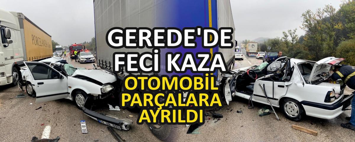 Bolu'da, seyir halindeyken önünde kaza yapan tıra çarpan otomobil parçalara ayrılırken, kazada ağır yaralanan sürücü hastaneye kaldırıldı.