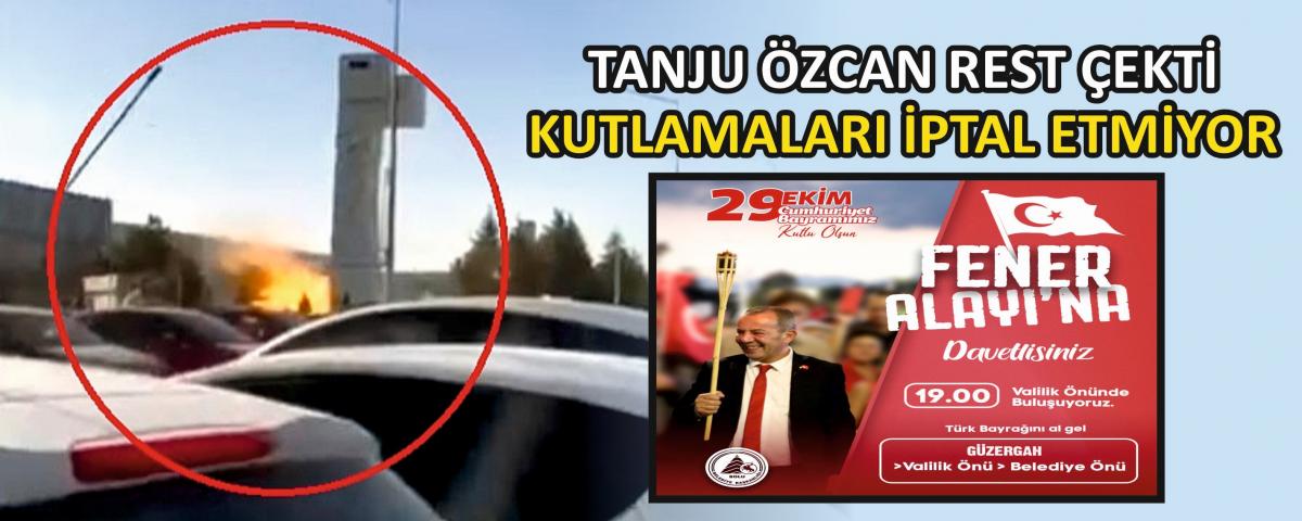 Ankara'nın Kahramankazan ilçesinde dün gerçekleştirilen terör saldırısının ardından bazı illerde 29 Ekim Cumhuriyet Bayramı kutlamalarının iptal edildiği açıklandı. Sosyal medya hesabı üzerinden açıklama yapan Bolu Belediye Başkanı Tanju Özcan, “el yükseltiyorum ve teröre inat, cumhuriyet bayramı etkinlik ve kutlamalarını iptal etmiyorum!” dedi.