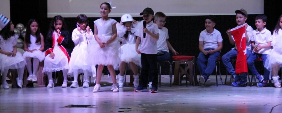 Velilerin yoğun ilgi gösterdiği programda, minik öğrenciler meslek tanıtımı gösterileriyle sahne aldı. Modern dans, zeybek ve tiyatro gösterileriyle renklenen etkinlikte, çocuklar ayrıca alfabedeki harfleri tanıttı. Öğrencilerin sahne performansları izleyicilerden büyük beğeni topladı.