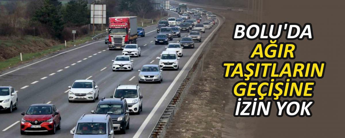 Bolu Valiliği kamyon, çekici ve tankerlerin geçişine izin verilmeyeceğini belirterek, "2025 yılı Kurban Bayramı tatili nedeniyle özellikle büyük şehirlerimizden diğer şehirlerimize ve turizm bölgeleri istikametine giden güzergahlarda taşıt trafiğinin yoğunlaşacağı göz önünde bulundurularak; vatandaşlarımızın huzur ve güven içerisinde seyahat etmelerinin sağlanması, oluşabilecek trafik sıkışıklığının azaltılabilmesi, sürücülerin trafik kural ihlallerinin önlenmesi ve asayişin muhafazası ile kamu düzeninin sağlanması amacıyla, 04.06.2025 Çarşamba günü saat 16.00'dan itibaren 06.06.2025 Cuma günü saat 11.00'a kadar, Ankara ili istikametine; O-4 Anadolu otoyolu Düzce il sınırından Ankara il sınırına kadar, D-100 Devlet karayolu Düzce il sınırından Gerede ilçesine kadar, D-750 Devlet karayolu Gerede ilçesinden Ankara iline kadar, kamyon, çekici ve tanker cinsi araçların arada kalan girişler dahil seyirlerine 5442 sayılı İl İdaresi Kanununun 11/C maddesi gereği izin verilmemesine Valiliğimizce karar verilmiştir" denildi.