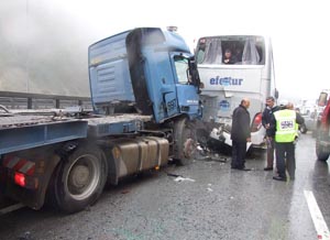 Ankara'dan İstanbul istikametine giden ve sürücüsünün kimliği belirlenemeyen 34 HJC 49 plakalı minibüs yoğun sis ve yağmur nedeniyle kayarak bariyerlere çarptı. Efe Tur'a ait 41 EF 116 plakalı otobüs önünde meydana gelen kazayı gördüğünde yavaşlayarak durmak istedi. Bu sırada arkadan gelen BH 3649 EP plakalı TIR otobüse arkadan çarpınca zincirleme kaza meydana geldi. Otomobil ve kamyonların da karıştığı kazada dört kişi yaralandı. Kaza nedeniyle İstanbul istikameti ulaşıma bir süre kapalı kaldı.