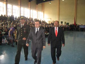 Kutlamalara resmi görevlilerin yanında, öğrenci velileri ve kalabalık bir halk topluluğu katıldı.