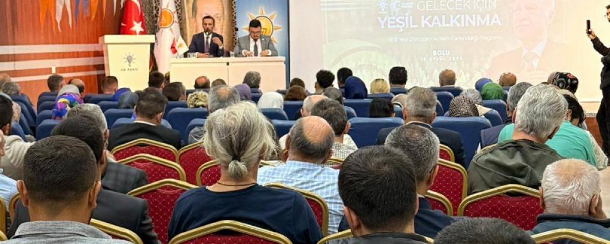 AK Parti Bolu İl Başkanlığı, 81 ilde gerçekleştirilen “Yeşil Dönüşüm ve İklim Farkındalığı” programı kapsamında bir etkinlik düzenledi. Programa, AK Parti Çevre ve Şehircilik Politikaları Başkan Yardımcısı Talha Köse katıldı.
