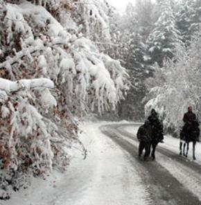 Fayton sahipleri kar yağışı altında gölün etrafını gezdirmek için müşteri bekledi. Kar küreme araçları da, yolda çalışma yaptı.