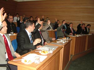Gündemin 3. maddesi 2008 Mali Yılı Bütçe ve Kesin Hesap Cetvellerinin tetkik edilmek üzere Plan ve Bütçe Komisyonu?na havalesine, Komisyonca hazırlanacak raporla birlikte karara bağlanmak üzere Meclis?te tekrar görüşülmesine oybirliği ile karar veridi. Gündemin 4. maddesinde; Kolektör Hattı Katılım Payı hakkında yapılan talebin görüşüldü. Meclisçe yapılan müzakerede; Meclis Üyesi H.Ekrem Serin gurup olarak yazılı bir istekleri olduğunu, yazılı isteklerinde; Belediyemiz tarafından yaptırılan Kolektör Hattı İle ilgili yapılan harcamaların ve Katılım Payı olarak kimlerden ne tür şartlarda ne kadar para talep edildiği konusunda Meclise bilgi verilmesini talep ettiklerini belirtti. Meclis Başkanı, CHP gurubunun bilgi istemleriyle ilgili yazılı istekleriyle beraber konunun tetkik edilmek üzere Plan ve Bütçe Komisyonuna havale edilmesine, komisyonca hazırlanacak raporla birlikte karara bağlanmak üzere Mecliste tekrar görüşülmesine oybirliği ile karar verdi. Gündemin 5. maddesinde; Kent Konseyine 10 adet üye seçilmesine geçildi. Kent Konseyinin fiili devamı çalışmalarının ve çalışmaların yürütülmesi için 2009 yerel seçimleri sonrasında yeni oluşturulan Belediye Meclisi?nin seçeceği üye tam sayısının %30?u olan 10 adet üye belirlenmesi hususunda Meclisçe yapılan müzakerede; AK Parti gurubundan 6, CHP gurubundan 4 olmak üzere, Kent Konseyi Üyeliğine; 1-Mehmet Özbostancı, 2-Muzaffer Zengin, 3- Abdülkadir Key, 4-Elif Nur Şener Yerlikaya, 5-Kazım Konak, 6- Burak Balaban, 7-Naci Yörük, 8-Tülay Ertozan, 9- Erhan Beykoz, 10- İsmail Hakkı Özgüneylioğlu olmak üzere 10 adet üyenin seçilmelerine oybirliği ile karar verilmiştir. Gündemin 6. maddesi; Belediye Meclisinin 2009 yılında tatil yapacağı ayın belirlenmesini kapsamaktadır. Meclisçe yapılan Müzakerede; Meclis Üyesi H.Ekrem SERİN, bu hususta grup yazılı bir teklifleri olduğunu belirtti. Teklifte; ?2009 Yılında Meclisin Tatil yapacağı ayın belirlenmesi konusuyla ilgili, Meclisimizin 2009 yılında tatil edilmemesine karar verilmesini istemekteyiz. Yapılan oylamada; CHP grubunun talebi olan 2009 yılında Meclisin Tatil edilmemesi teklifi uygun görülerek, 2009 yılında Meclis çalışmalarında tatil yapılmamasına oybirliği ile karar verildi. Gündemin 7 Maddesi Birim Müdürlüklerinden gelen evrakların görüşülmesi konusu: Birim Müdürlüklerinden iki evrak meclise sunuldu. Evraklar oy birliğiyle kabul edildi.