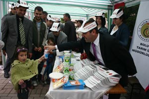 Bolu Belediye önünde kurulan stantlarda Bolu?da üretim ve pazarlama yapan süt firmalarının ürettiği süt ve süt ürünleri dağıtımı yapıldı. Süt almak isteyen Bolulularda stantların önünde uzun kuyruklar oluşturdular.