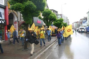 Toplu Sözleşme için yürüyoruz sloganıyla Ankara?ya giden Eğitim-Sen üyeleri sabahın erken saatlerinde İzzet Baysal Caddesinde sloganlarla yürüdüler. Kızılay Hamamı?nın karşısından Ankara gitmek için otobüse binen Eğitim-Sen üyelerini sendikacı arkadaşları uğurladı. Belediye önünden Kızılay Hamamı önüne kadara İzzet baysal Caddesinden yürüyen Eğitim- Senciler yürüyüş boyunca slogan attılar. Kızılay Hamamının karşısında bekleyen Sendikacılar iki otobüsle Ankara?ya hareket ettiler.