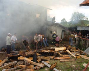 Önceki gün akşam çıkan yangında, iki katlı eve şiddetli yağmur nedeniyle müdahele etmek zorlaşınca tamamen enkaza dönen evden geriye sadece odunlar kaldı. İki katlı ahşap evde çıkan yangında facianın eşiğinden dönülürken, iki kişi alevlerin arasından camdan atlayarak kurtuldu.