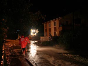 Mudurnu ilçesinde akşam saatlerinde gök gürültüsü ile başlayan ve ardından sağanak halinde yağan yağmur nedeniyle, yağmur suları bazı evlerin bodrum katlarına girdi. Yolları sel götürdü.