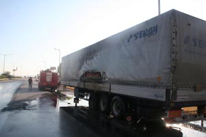 Edinilen bilgiye göre, olay saat 18.30 sıralarında meydana geldi. Ankara'dan İstanbul istikametine gitmekte olan Seyfi Ertürk yönetimindeki 34 YIL 08 plakalı tuğla yüklü TIR'ın, Paşaköy gişelerine 4 kilometre kala lastikleri yanmaya başladı. TIR sürücüsü Seyfi Ertürk, alevlere ilk müdahaleyi yaparken, olay yerine gelen itfaiye ekipleri TIR'ı saran alevlere müdahale etti. TIR'ın lastikleri kullanılamaz hale gelirken, sürücü Ertürk, lastiklerin bir anda alev aldığını ve daha sonra alevlerin dorseye sıçradığını söyledi. Polis ekipleri olayla ilgili inceleme başlattı.