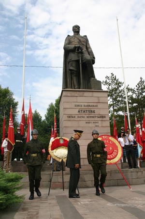 Büyük önder Atatürk?ün ilimize gelişinin 75. Yılı coşkuyla kutlandı. Protokolün katıldığı yürüyüşle başlayan kutlamalar, Anıtpark?ta çelenklerin konulması ile devam etti. 4 Kilometrelik etbı yürüyen protokol daha sonra ise Atatürk Heykeline çelenk koydu.