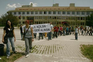 Abant İzzet Baysal Üniversitesi?nde eğitim gören 100?e yakın öğrenci, harç paralarına yapılan yüksek zamma karşı eylem yaptı. Eğitim Fakültesi önünde toplanan gençler, YÖK Başkanı Yusuf Ziya Özcan için uyarladıkları şarkıları söyleyerek ve slogan atarak kampüste yürüdüler. Rektörlük önünden Fen Edebiyat Fakültesi önüne gelen gençlerin arasında bulunan türbanlı öğrenci de dikkatleri çekti. Başörtüsüz girdiği kampüste eyleme katılan genç kız da slogan atarak harç zammına tepki gösterdi. Üniversiteliler, daha sonra eylemlerine hazırladıkları skeçle devam ettiler.