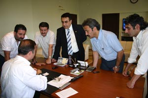 Köroğlu Gazeteciler Cemiyeti Başkanı H.Hüseyin Aykan ve Yönetim Kurulu Üyeleri?nin bir sonraki durağı İl genel Sekreteri Tahsin Akduman oldu. Akduman?ı makamında ziyaret eden Köroğlu Gazeteciler Cemiyeti Yönetim Kurulu, Akduman?dan çalışmalar hakkında bilgi aldılar.