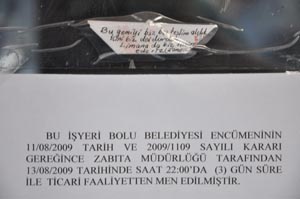 Bolu'da kaldırımların işgal edildiği gerekçesi ile uyarı alan iş yerlerinden bazıları yapılan uyarılara uymayınca Bolu Belediyesi Zabıta ekipleri tarafından geçici süre ticari faaliyetten men cezası aldılar. 3 gün kapanma cezası alan İlhan Büfe isimli iş yerinin camına, zabıta ekipleri tarafından, "Bu iş yeri Bolu Belediye Encümeninin 11.08.2009 tarih ve 2009/1109 sayılı kararı gereğince zabıta müdürlüğü tarafından 3 gün süre ile ticari faaliyetten men edilmiştir" şeklinde bir yazı asıldı. Asılan yazıya sinirlenen iş yeri sahibi ise zabıta ekiplerinin astığı yazının üstüne, "Bu gemiyi biz boş teslim aldık, içini biz doldurduk, limana da biz teslim ederiz. (Tombul)" şeklinde bir yazı astı.