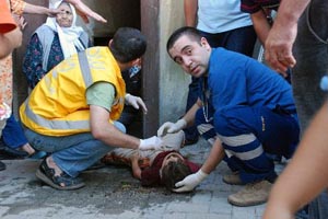 Olay yerine çağrılan ambulansta bulunan sağlık görevlisi, yere düşen çocuğa hemen boyunluk taktı ve ilk müdahaleyi yaptı. Bu sırada oğlunun başında gözyaşları döken anne Satı A, "Anneciğim, ne olursun bir şey olmasın. Kurban olurum." diyerek feryat etti. Sedyeyle ambulansa konulan Alper A. Bolu İzzet Baysal Devlet Hastanesi'ne kaldırıldı. Anne Satı A.'da oğluyla birlikte hastaneye gitti. Alper A.'nın sağlık durumunun ciddiyetini koruduğu bildirildi.