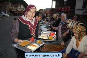 Mengen Pazarköy beldesinde belediyenin organizesi ile Kızılay tarafından kurulan iki çadırda ramazan ayı boyunca orucunu açmak isteyenlere yemek veriliyor. Yemekler emektar aşçıbaşı Nurettin Yüksel ve yardımcıları tarafından özenle hazırlanıyor.