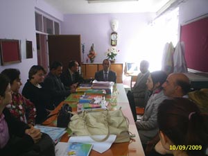 Okulda incelemeler yapan İlçe Milli Eğitim Müdürü Durmuş ve İdare Heyeti, çocukları ile birlikte okula gelen öğrenci velileri ile de görüşerek eğitim öğretim hakkında bilgilendirdi. Okul bahçesindeki sohbetin ardından Fuat Durmuş ve İdare Heyeti toplantı salonunda okul öğretmenleri ile birlikte toplantı yaparak kitap dağıtımı ve eksikleri hakkında öğretmenlerden bilgi aldı.