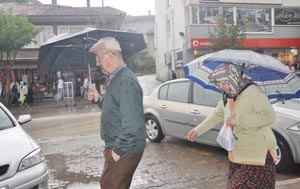Arife günü akşam aralıklarla yağan yağmur Bayramda da öğleden sonra il merkezini teslim aldı. Bayramlaşmaya çıkan vatandaşlar şemsiyelerini açarken, yağmur?a hazırlıksız yakalanan vatandaşlar ise dükkan saçaklarına ve otobüs duraklarına sığındılar.