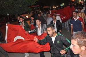 Anıt Park'tan başlayan yürüyüşte, İzzet Baysal Caddesi'ne gelinirken "Kahrolsun PKK", "Türk Kürt kardeştir, PKK kalleştir" sloganları atıldı. Polis ekiplerinin yoğun güvenlik önlemlerinin alındığı eyleme bazı vatandaşlar da ev ve işyerlerinden alkışlarla destek verdi. Bankalar Caddesi'nde sona eren yürüyüş sonrasında grup adına bir konuşma yapan Mahmut Alan, "Maalesef memleketimiz adına dönüm noktası olacağına inandığımız günler yaşıyoruz. Türk ve Kürt kardeşliğine bir diyeceğimiz yok. Ama dağda askerimize, gazilerimize kurşun sıkan şerefsizler, bugün davul zurnalarla karşılanıyor. Bir Türk olarak tepkisiz kalamazdık. Bizim teröristlerle pazarlık ederek teslim olmalarına ihtiyacımız yok. Teslim olmak isteyen devletle pazarlık etmez. Gerçekten pişmansa gelir teslim olur ve cezasını çeker" diye konuştu.