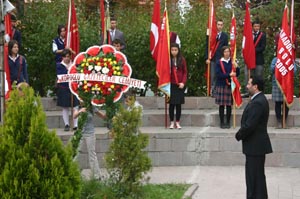 Çelenklerin sıra ile Anıt?a konulmasının ardından Saygı Duruşu?nda bulunuldu ve İstiklal Marşı okundu.