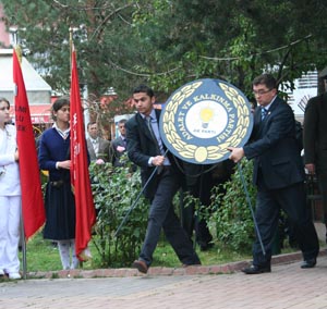 İlçemizde bulunan devlet erkânın, kamu kurum ve kuruluşlarının, siyası parti temsilcilerinin ve sivil toplum kuruluşları değerli yöneticilerinin gözleri önünde yaşanan bu skandalı yaratan AKP yöneticilerinin telefonla aranıp bilgilendirilmesine rağmen törene katılımları gerçekleştirilememiştir. Tören alanına binbir gayret ve çabalar sonucu ancak Ak Parti çelenginin getirilmesi sağlanabilmiştir. Sıra ile çelenk koyma töreni bittikten sonra AKP?nin çelenginin tören alanındaki yerine konulma görevi ise belediye personeli tarafından sağlanabilmiştir.