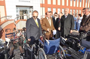 Konuşmaların ardından tekerlekli sandalyeler ve yürüteçler İzzet Baysal Tıp Fakültesi Araştırma ve Uygulama Hastanesi?ne teslim edildi.