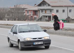 Öğle saatlerinde okula giderek yemek molasında çocuklarını eve götürmek üzere alan bir kadın, D-100 Karayolu'nda adeta ölüme meydan okudu. Öğrencilerin güvenli geçiş yapabilmeleri için yapılan yaya geçidini uzak olduğu gerekçesiyle kullanmak istemeyen anne, iki çocuğu ve kendi hayatını tehlikeye attı. Okul dönüşü 100 metre ileride bulunan yaya geçidini kullanmayan kadın, iki çocuğuyla birlikte yol ortasından karşıdan karşıya geçmek istedi. Trafiğin yoğun olduğu yolda sürücülerin selektör ve kornalarına basarak uyarmasına rağmen kadın iki çocuğuyla birlikte olan biteni umursamadan evinin yolunu tuttu.