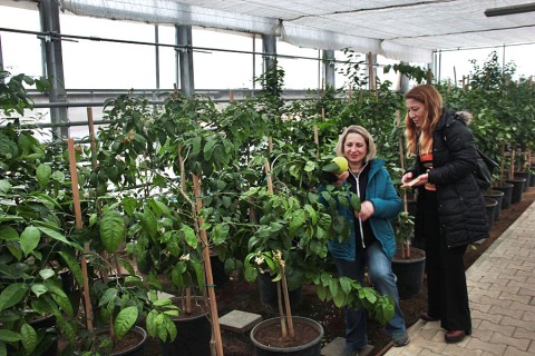 Z.Y.Müh. İlknur Özkök Kaşıkçı: Burası tropikal seramız. Burada tropikal mevsimlerde, tropikal yerlerde yetişen ağaçlarımız, meyvelerimiz mevcut. Parmak limonlar, kaymak meyvesi, beyaz sapot, sarmaşık çarkıfelek, hurma, ananas, zencefil, kumkuat, dağ çileği, hünnap, şadok, mango, yıldız meyvesi, muz, demirhindi, portakal, mandalina, limon, nar, çerimoya, Budanın eli, mersin gibi birçok türleri yetiştirmekteyiz. İyi sonuçlar aldık. Meyvelerini verdiler. Serayı onların istediği sıcaklıklarda ısıtıyoruz. Nemini de sağlıyoruz. Bunu yapmaktaki amacımızda Bolu’da yaşayan bir insanın muz ağacı görme şansı yok biliyorsunuz. Okullardan gelip geziyorlar. Çocuklar muz ağacını görüyorlar. Hurma ağacı nasılmış, muz ağacı nasılmış, limon ağacı nasılmış onu görüyorlar. Bu seranın sayesinde limonu, mandalinayı dalından koparıp yeme şansları oluyor.