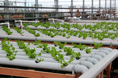 Z.Y.Müh. İlknur Özkök Kaşıkçı: Burada topraksız tarımda, suyun içinde marul yetiştiriyoruz. Aynı domatesler gibi burada da su depolarının içine ihtiyacı olan vitaminlerini, gübrelerini dışarıdan veriyoruz. Topraksız olarak, kanallarda bulunan cam yünlerin içinde tohumları ekiyoruz. Bunun içinde köklenip, burada büyüyorlar. Büyüdükten sonra daha geniş boruların içine alıyoruz. Bu şekilde de topraksız tarımla marul yetişebiliyor. Bu serada ayrıca geçen yıl tarlaya diktiğimiz çileklerin uzayan dallarından keserek saksılarda üretime aldık. Burada ki amaç da yine aynı, az yerden çok fazla ürün almak ve hastalıklara karşı daha dayanıklı olarak yetiştirmek.