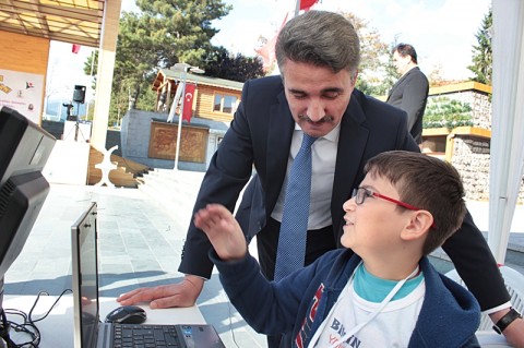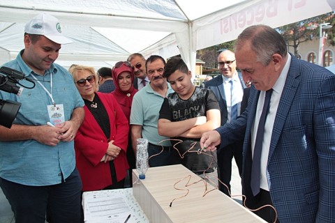 Burcu Şimşek; “Birkaç bilim şenliği örneğini inceledik, ne yapabiliriz diye. Valilik, Abant İzzet Baysal Üniversitesi Eğitim Fakültesi, Bolu Milli Eğitim Müdürlüğü ile işbirliği içerisine girdik. Biz biraz çıtayı yükselttik. Sadece il bazında kalmayalım istedik. Gazi Üniversitesi Eğitim Fakültesi de proje ortağımız oldu. İnsansız hava araçları çok önemli Türk Hava Kurumunun Ata uçağı, model uçağı ile başlayalım bu işe dedik. Türk Hava Kurumunu proje ortağımız. Sonra baktık bilim dediğimiz şeyin içerisinde, hayatın içerisinde olan ve günlük aslında her daim tecrübe ettiğimiz şeylerle karşı karşıyayız ve yaşadığımız Bolu deprem bölgesi, o zaman mutlaka depremle ilgili bir farkındalık oluşturalım dedik. Bolu AFAD İl Müdürlüğü ve Ankara’da ki AFAD Başkanlığı ile iletişime geçtik. Deprem simülasyon tırlarını, sanal gerçeklik gözlüklerini buraya getirdiler. Kağıtta olsun, çocuklar kağıt yapsınlar, kağıdın önemini anlasınlar, yapmanın ne kadar zor olduğunu anlasınlar ki tüketirken dikkatli olsunlar istedik. Kocaeli SEKA Kağıt Müzesi ile iletişime geçtik. Onlarda sağ olsunlar, kırmadılar geldiler ve birçok branştan, alandan kurumlar bir araya gelmiş oldu.”