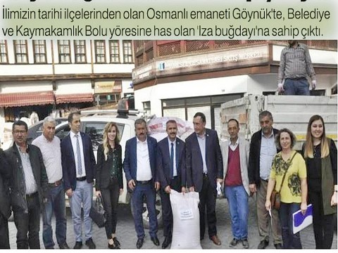 Ziraat Yük. Müh. İlknur Özkök Kaşıkçı; “Süreç devam ederken, 2017 yılında Bolu kent merkezinde ve Seben’de toplam 200 dönümlük bir alanda deneme ekimi yaptık. Çiftçilerimize tohum verdik ve ekmelerine katkıda bulunduk. 28 Haziranda BAİB Üniversitesi ile birlikte ‘1. Iza Buğdayı Paneli’ ve ‘Tarla Günü’ düzenledik. Yine 5 Temmuzda Seben Belediyesi ile güzel bir tarla gününü de çok kıymetli hocalarımızla ve yoğun bir misafir katılımıyla gerçekleştirdik. Ağustos ayında ilk hasadımızı yaptık, 10 tondan fazla tohumluk Izamız oldu, bu Iza’ların 3000 kg Göynük’e, 240 kg Mudurnu’ya, 4231 kg Seben’e ve 1000 kg.dan fazlasını da Bolu çiftçisine geri alım garantili sözleşme yaparak dağıtımını sağladık. 4231 kg Seben’e ve 1000 kg.dan fazlasını da Bolu çiftçisine geri alım garantili sözleşme yaparak dağıtımını sağladık. Bu çalışma oldukça ilgi gördü, talepler oldukça fazlaydı, Bolu Merkezde, Göynükte, Mudurnu’da ve tohum bankası olacak olan Seben’de toplam 47 çiftçimize 8500 kg tohum dağıtılarak 569 dönüme Iza ekimi sağlandı. Ayrıca Bolu Belediyesi olarak 60 dönüme de kendimiz organik olarak Iza üretimi gerçekleştirdik.”