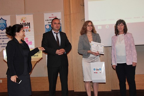 Bolu İl Milli Eğitim Müdürü Yasin Tepe, proje ortakları ve projede emeği geçen tüm ekibin aileleriyle birlikte katıldığı, Abant Büyük Otel’de gerçekleşen yemekli kapanış toplantısında, proje ortakları ile projede emeği geçenlere sertifikaları takdim edildi. Projenin ilk temellerinin atılması sağlayanlardan İlksen Oben Eruçar’ın yabancı ortakların konuşmalarının çevirilerini yaptığı, sertifika takdimi öncesi konuşma yapan Müdür Ayhan Vural; “İki yıl boyunca büyük emek verdiğimiz, çok yoğun bir şekilde çalıştığımız projenin son kapanış toplantısına geldik artık. İlk projenin çıkışı noktasında sanayi ticaret odasında Mustafa Karakaya Hocamızı bir proje toplantısına gönderdik ve o toplantıda Oben Eruçar Hanım, Erol Karakırık hocamla tanıştı. Daha sonra fikir olarak bu projenin temelleri atıldı. Tabi bu projede görev alan arkadaşlar ekip ruhuyla, takım ruhuyla çalıştılar. Eğer ekip ruhu ve takım ruhu olmasaydı bugün bu toplantı olmayacaktı. Burada gördüğümüz şu interaktif ortam, çıktılar, terim kitabı, tarif kitabı bunlar olmayacaktı. Bütün ülkeler, ortaklar sorumluluklarını fiilen yerine getirdiler. Dolayısıyla da bu üç çıktıyı şuanda karşımızda görebiliyoruz. Son tarihlere kadar bütün veriler girildi.”diye belirterek tüm Viva Cuisine ekibine, emeği geçenlere teşekkür etti.